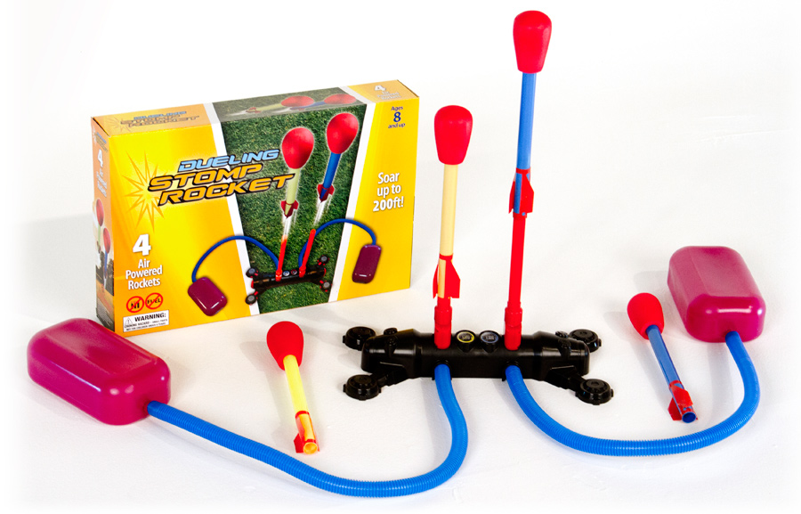 Stomp Rocket-kids LOVE playing with stomp rockets. After the kids place the foam rocket on a tube they jump on the launch pad and it shoots off. This is a great toy for working on jumping, balancing on one foot and building body strength. I love this toy because it is non-battery operated and doesn’t make a ton of noise. The kids love it because it is really fun to make something fly and the higher it goes, the happier they are. I really like this Dueling Stomp Rocket that I saw in the Fat Brain catalog. Looks like a perfect family gift!