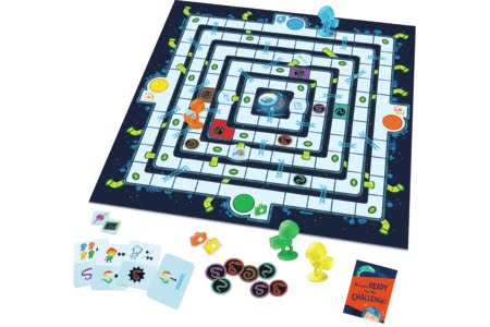 Mole Rats In Space-for my social skills group, I like to find games for the kids to play that will not only be fun but may also encourage them to work together to win a game. Often times, the kids I work with are so competitive and not good about winning OR losing so finding collaborative games helps develop important social skills. Peaceable Kingdom has a ton of great these kinds of games to choose from. In Mole Rats In Space, kids work together to collect equipment and escape the station before you’re bitten by a snake or time runs out. Kids flip over cards and have to follow the directions: they may need to move you or your teammate, move snakes around or add a new snake to the board. Avoid getting bitten by a snake and having to return to start or even worse. This game is geared towards older children (7 and older) and could be a great addition to a family game collection. Great for working on improving focus, attention and organizational skills, motor planning and working as a team to accomplish a goal.