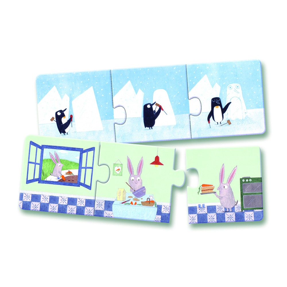 Puzzle Trio Stories-I love these mini puzzles from one of my favorite toy companies, Djeco. This set contains 8 3-piece puzzles that when put together tell a story. They are great for working on improving visual motor and perceptual skills, hand-eye coordination, bilateral coordination and focus, attention, motor planning and organizational skills. If you have a child who has speech and language delays, they are a fun way to work on sequencing and storytelling skills. You can make these more portable by throwing them in a ziploc bag.