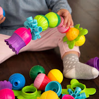 Lalaboom Pop Beads-I love when I find a traditional toy that has been given a bit of a modern update to it. I can remember playing with the Fisher-Price pop beads as a child and still recommend pop beads to parents who are looking for developmental toys for their babes. I was killing time at the beginning of the year and scouring Fat Brain Toys when I stumbled upon the Lalaboom beads. These snap together beads are a great way for young children to work on increasing grasp and upper extremity strength, improves bilateral coordination, motor planning skills and hand-eye coordination. What’s nice about these beads are that they each have a different texture on the outside making it an opportunity for sensory exploration. The other great thing about them is that each bead is actually two parts and can be screwed apart and they can mix and match beads. So as kids grow, the way they can play with this toy changes and becomes increasingly more challenging.