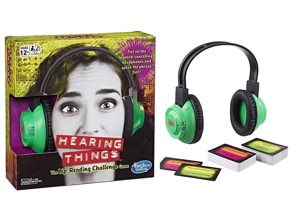 Hearing Things-another recommendation from my speech therapist colleague, Jacki Barredo, geared towards older children (10 and older). After the online viral “whisper challenge” sensation, Hasbro created this game. One player puts on a pair of speech-cancelling electronic headphones and the other player is required to say the random phrases on the card. The player only earns the card if they correctly figure out what the other one was saying.