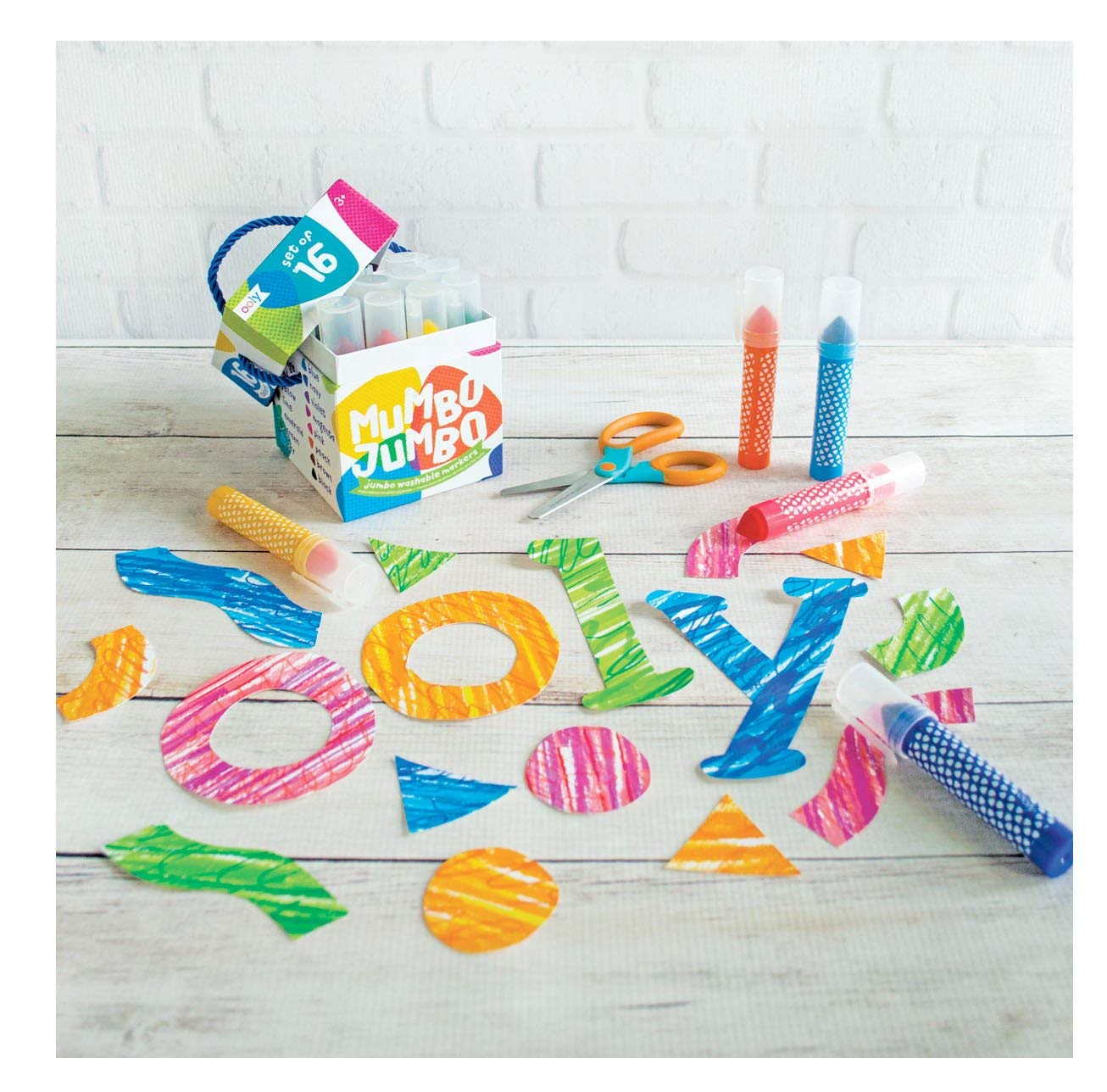 Mumbo Jumbo Chunky Markers-not all parents/therapists believe in giving young children markers to play with but I think it is a perfect first writing instrument, especially if you have a child has decreased grasp strength. One question I get asked a lot is what markers are best for toddlers. These markers are by far my favorite for little hands. This set of 16 washable markers are the perfect size for toddlers. The thick barrel of the marker makes them easy for the kids to hold.