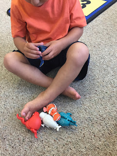 A couple of weeks ago, I was searching for some Finding Dory toys for work. It’s all the kids at work are talking about this summer and I wanted to see what I could find. On my hunt, I found these things called Hatch N’ Heroes. I had never heard of them but I had to test them out as they seemed like the most perfect occupational therapy toy/tool. Simply put, Hatch N Heroes are egg shaped toys that can transform into different characters. Remembering how popular any transformer toys were when I was growing up, I felt like it would be a fun thing to try with the kids. It was especially exciting to find characters like Nemo, Dory, Lightning McQueen, Woody and a bunch of other popular characters.